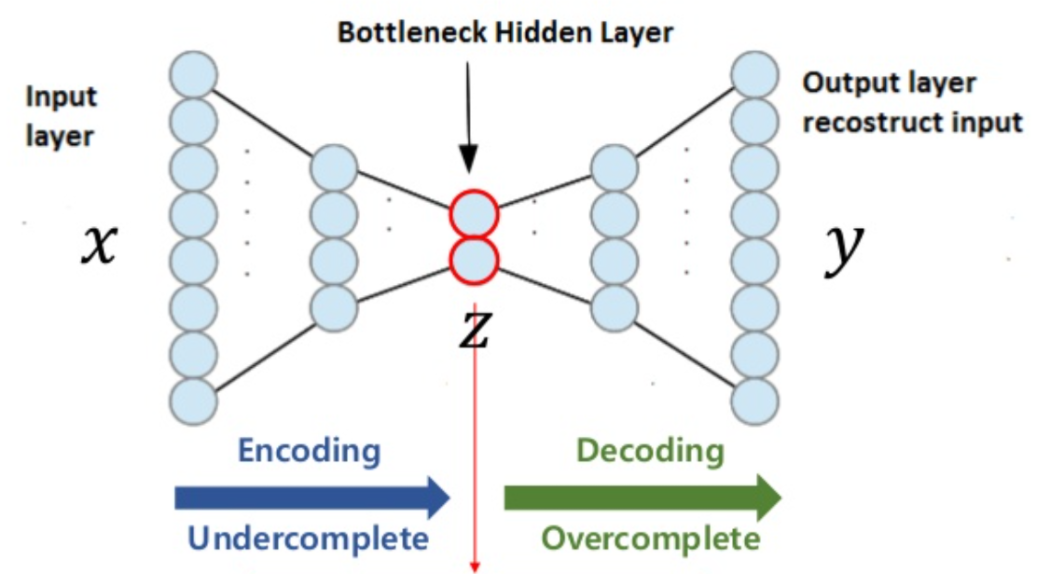 $z$ : latent variable, space(잠재 변수, 공간), feature(특징), hidden representation으로 불림