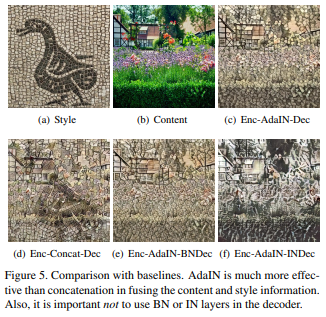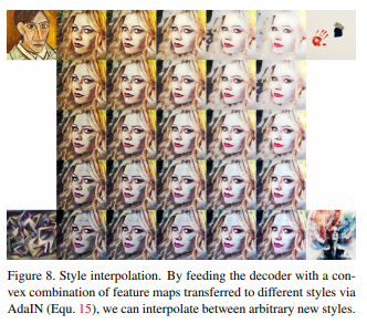 실험을 통해 AdaIN은 feature 통계를 전송하여 전자와 스타일 후자의 내용을 효과적으로 결합합니다.