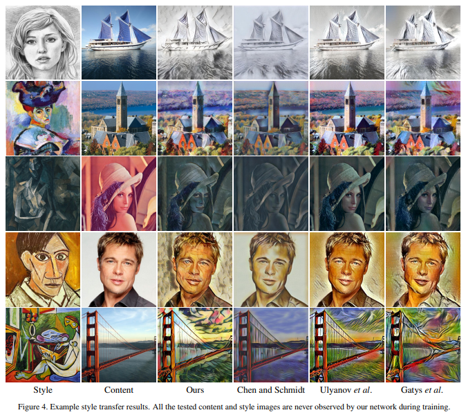 아주 최근에 [6]은 스타일 스왑 레이어(style swap layer) 덕분에 임의의 스타일을 전송할 수있는 피드 포워드 방법을 도입했습니다.
